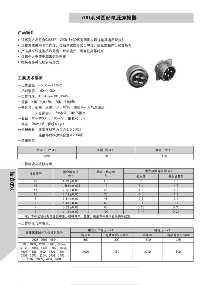 供應航天YGD系列圓形電連接器: