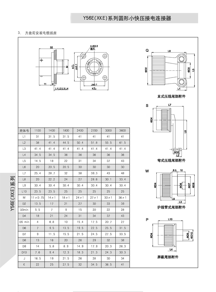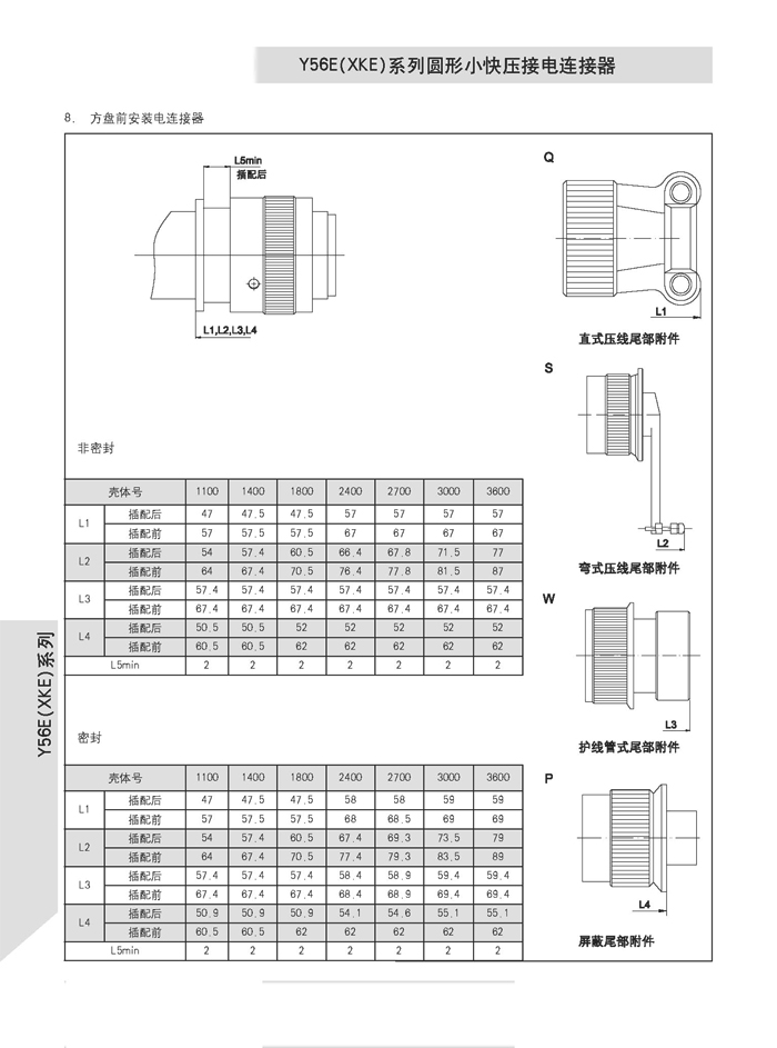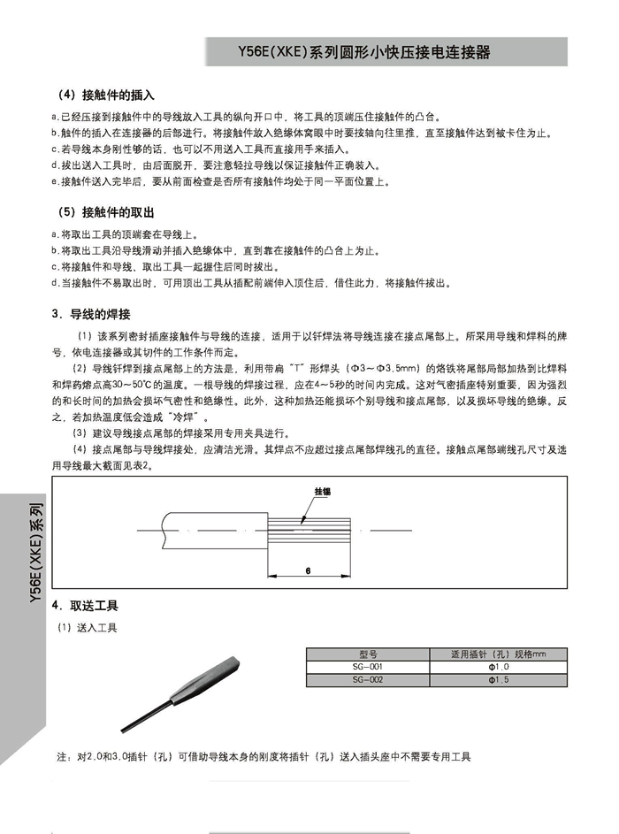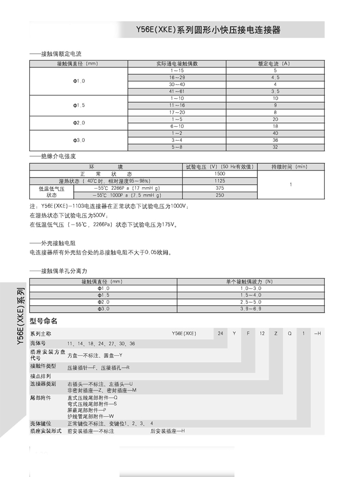 XKE圓形壓接式航空插頭,符合HB6112-86《XKE系列小圓形快速連接壓接型插頭座》標準的要求。該系列航空插頭的特點為卡口式連接,具有快速連接、分離、體積小、重量輕、接觸件密度高,可靠性高等優(yōu)點.接觸件與導線的連接為壓接端接(密封插座接觸件與導線的連接為焊接端接),接觸件可單個取出或送入,為后松后取式.該系列航空插頭有7個殼體,29個孔組,有密封,非密封品種.尾部附件有直式壓線,彎式壓線,護線管式,屏蔽式四個品種.產(chǎn)品具有可靠而又快速地連接和斷開無線電儀器和電器設備電路的特點.