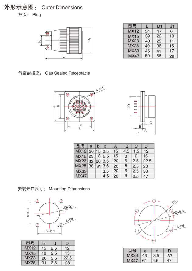 MX系列氣密封圓形連接器,主要技術(shù)參數(shù)非等效采用美軍標(biāo)MIL-C-26482G。 供航空,航海及其他密封容器中電子設(shè)備與電源.電氣間連接,導(dǎo)線與電纜間電氣連接用。連接方式為螺紋連接鎖緊機(jī)構(gòu),使用方便。插座采用玻璃燒結(jié)工藝,氣密封性高,屬于儀器式電連接器。