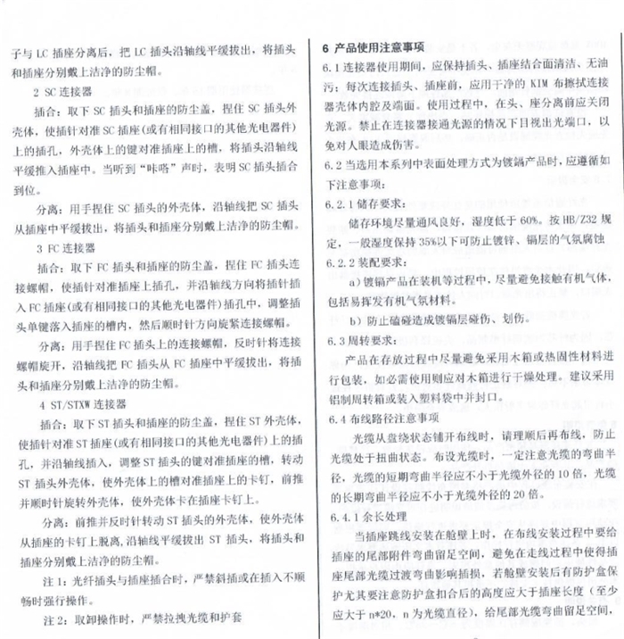 端為GYC30,二端為LC,FC,ST,活動連接器,具體尺寸和使用要求見下表。