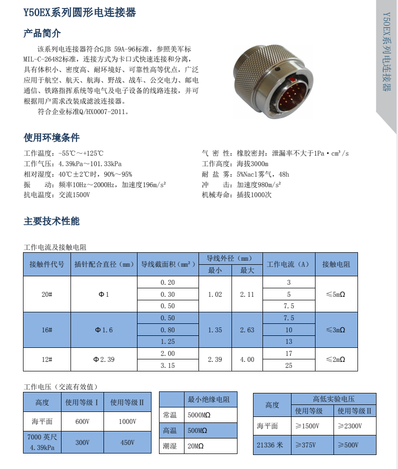 Y50EX系列圓形電連接器符合GJB598A-96標準,同時滿足MIL-DTL-26482H質(zhì)量標準,卡口是快速連接,雙重鎖緊結(jié)構(gòu),