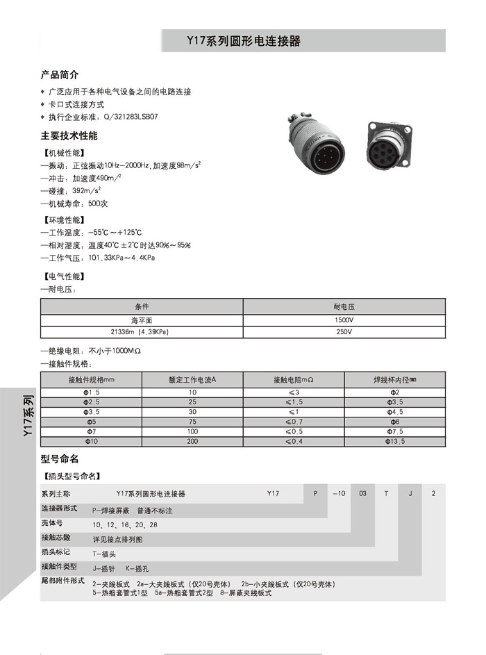 - Y3系列圓形航空插頭(GJB2905-2004)