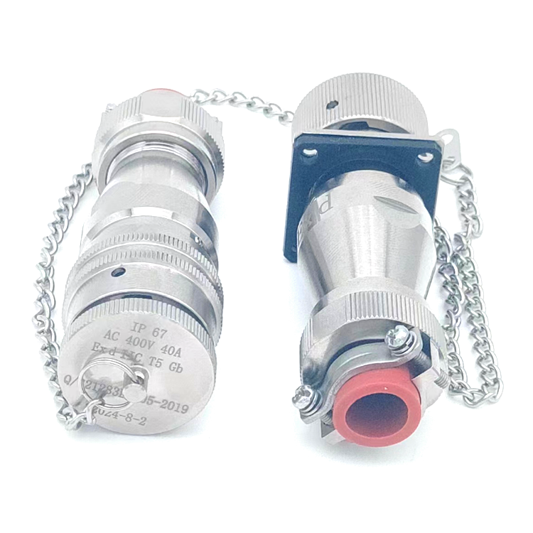 和插座螺旋卡口式 連接,連接后防水防爆。