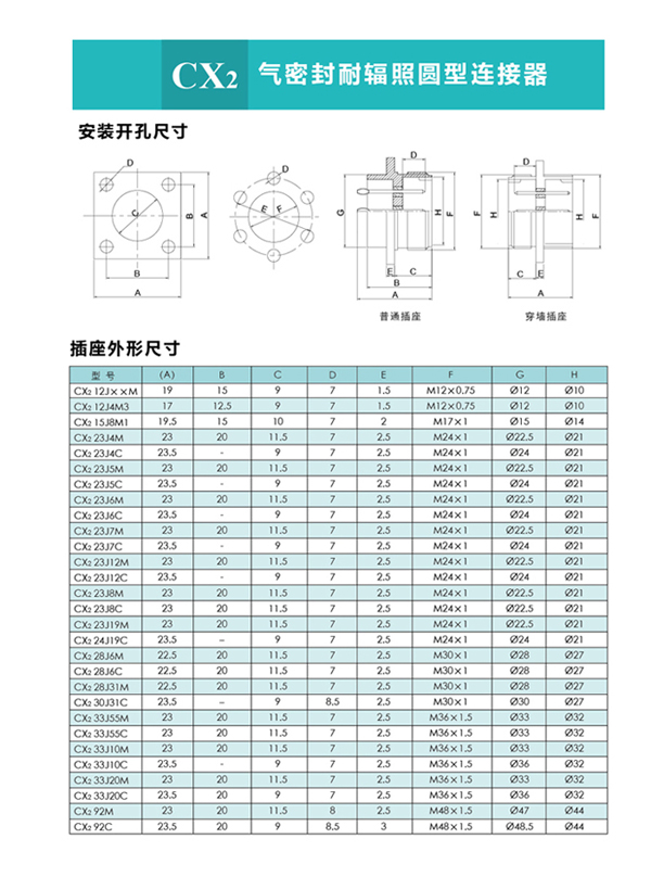 接觸件4芯,每芯額定電流50A,插座采用玻璃燒結(jié)工藝,氣密性能強(qiáng),以下是產(chǎn)品芯譜和安裝尺寸。