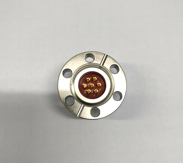該系列真空密封航插,借用標(biāo)準(zhǔn)法蘭CF16外殼,中間設(shè)計(jì)7芯引線,佩帶移動(dòng)插頭,卡口連接,鎖緊卡口,抗震,防腐。