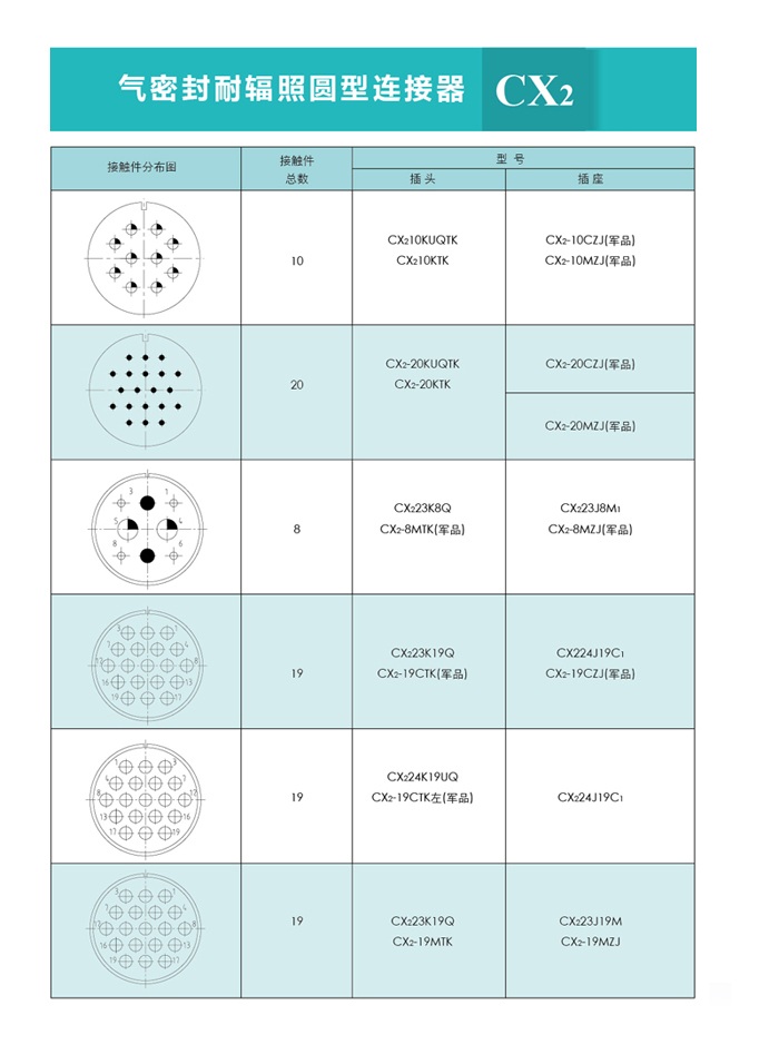 密封穿墻電連接器主要用于氣密座艙及其他電氣、無(wú)線電設(shè)備,需要保持氣密性能穿過(guò)墻壁的電連接。 CX2系列8芯真空密封插座目前有七個(gè)殼體號(hào),二十九個(gè)孔組數(shù),有非密封、密封和密封穿墻等品種。尾部附件有直式壓線式、護(hù)線管式、彎式壓線式和屏蔽式四個(gè)品種;除以上四種形式的尾部附件外,還設(shè)計(jì)了 種尾部附件形式,供用戶選用。