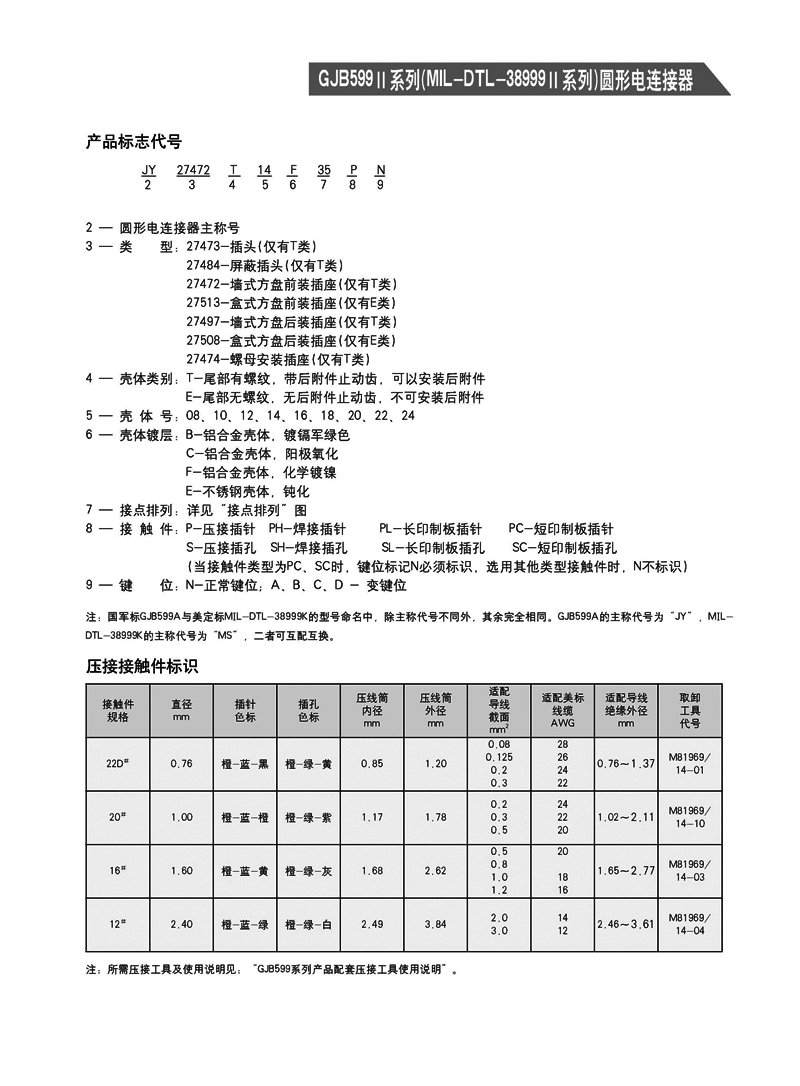 JY27473T14F19PN/SN圓形電連接器,是GJB599A(mil-dtl-38999k)標(biāo)準(zhǔn),體積最小,殼體端,適用于沒有高強(qiáng)度振動(dòng),沒有風(fēng)沙和潮濕的場(chǎng)合。