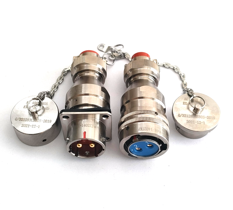 40A圓形2芯隔爆連接器防爆插頭插座,接觸件3.5mm,額定電流達(dá)40A,耐壓1000V,螺旋卡口連接,有三只卡銷雙重鎖緊,
