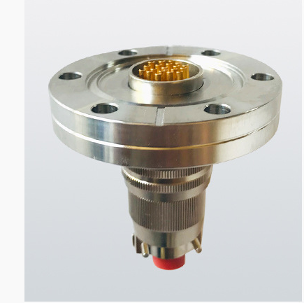 CF35真空法蘭32芯玻璃燒結(jié)密封插座,CF35是標(biāo)準(zhǔn)尺寸大小,在盲板上設(shè)計(jì)了32芯座殼體,采用特殊加工工藝,真空