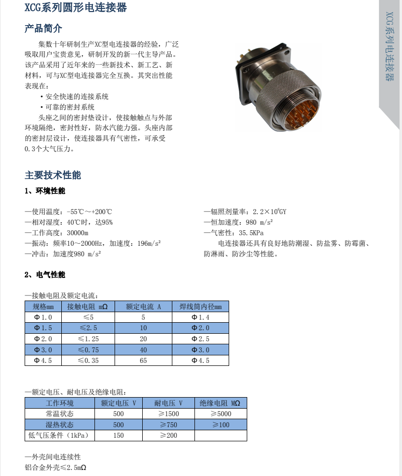 XCG系列電連接器在XC系列基礎(chǔ)上更新,有安全快速性的連接系統(tǒng),可靠的密封系統(tǒng),接觸點(diǎn)與外部環(huán)境隔絕,防水氣能強(qiáng)。