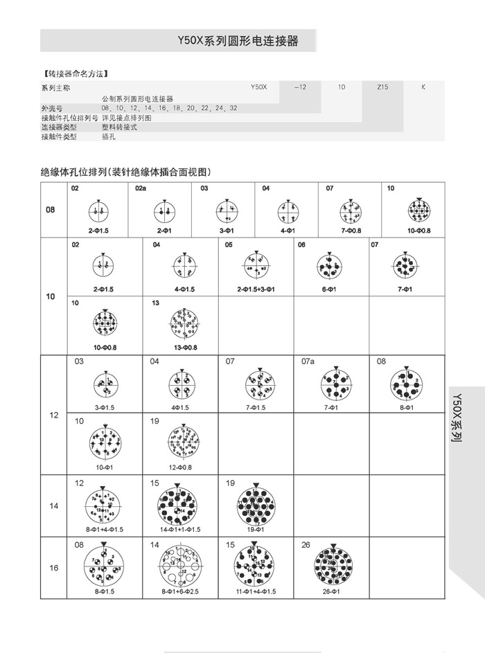 Y50H-1415ZJ圓形真空密封接插件,15芯,額定電流5A,整個系列插座是借用Y50系列航空插頭芯譜,同等型號殼體可以互換,插頭一般是鋁材料,有銅,不銹鋼材料選擇,沒有特殊情況,建議選用常規(guī)產(chǎn)品,省工省力。以下是芯譜和安裝尺寸:
