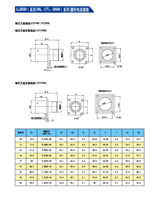 - GJB599I系列圓形航空插頭(MIL-DTL-3899)