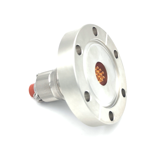 CF35是一塊標準法蘭,尺寸大小是一樣的,標出尺寸。在盲板中間設(shè)計不同芯數(shù)的插座,最多芯數(shù)61芯,現(xiàn)規(guī)格是10芯,